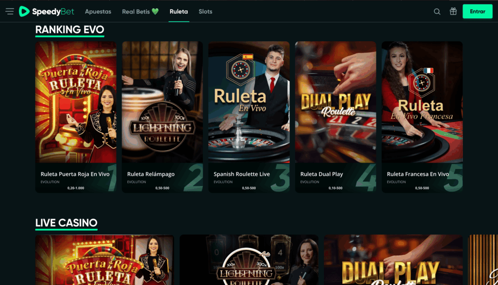 - Oferta de casino en vivo centrada en juegos tradicionales, como ruleta y blackjack.